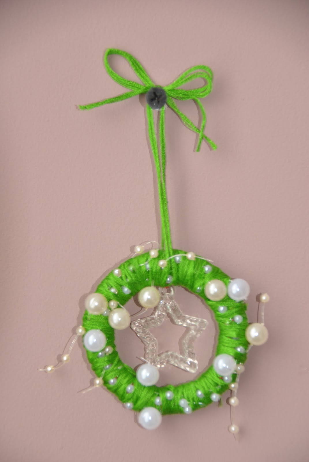 Ну и на последок,новогодняя игрушка-венок. Сделала очень давно,хотела с ним открытку сделать, но вдохновенье не пришло:( Правда он и так хорош, да еще у нас елка со светящимися, встроенными так сказать звездами. Вписался как родной:)!